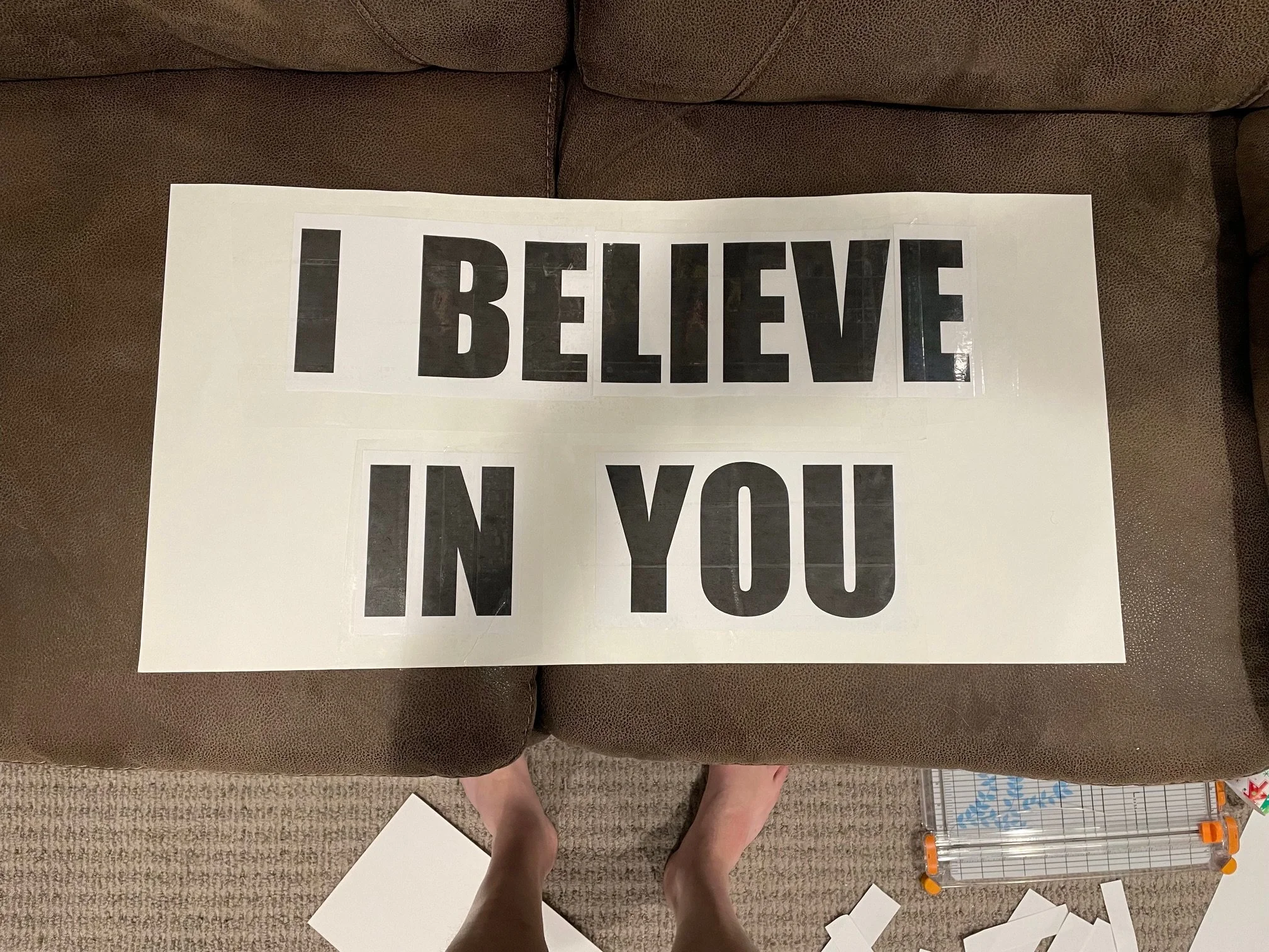 That Monday night, I finally created my sign. Using a dollar store poster board and printed letters, I made a simple sign saying "I BELIEVE IN YOU." The next morning, despite serious doubts, I took that first run. I started by holding it up for some kids walking to the bus stop, getting smiles in return. When I saw cars, I held it as high as I could. The reactions were amazing - people smiling, waving, honking. I had a blast, even though it was physically challenging. My heart rate was much higher than usual, but I pushed through.